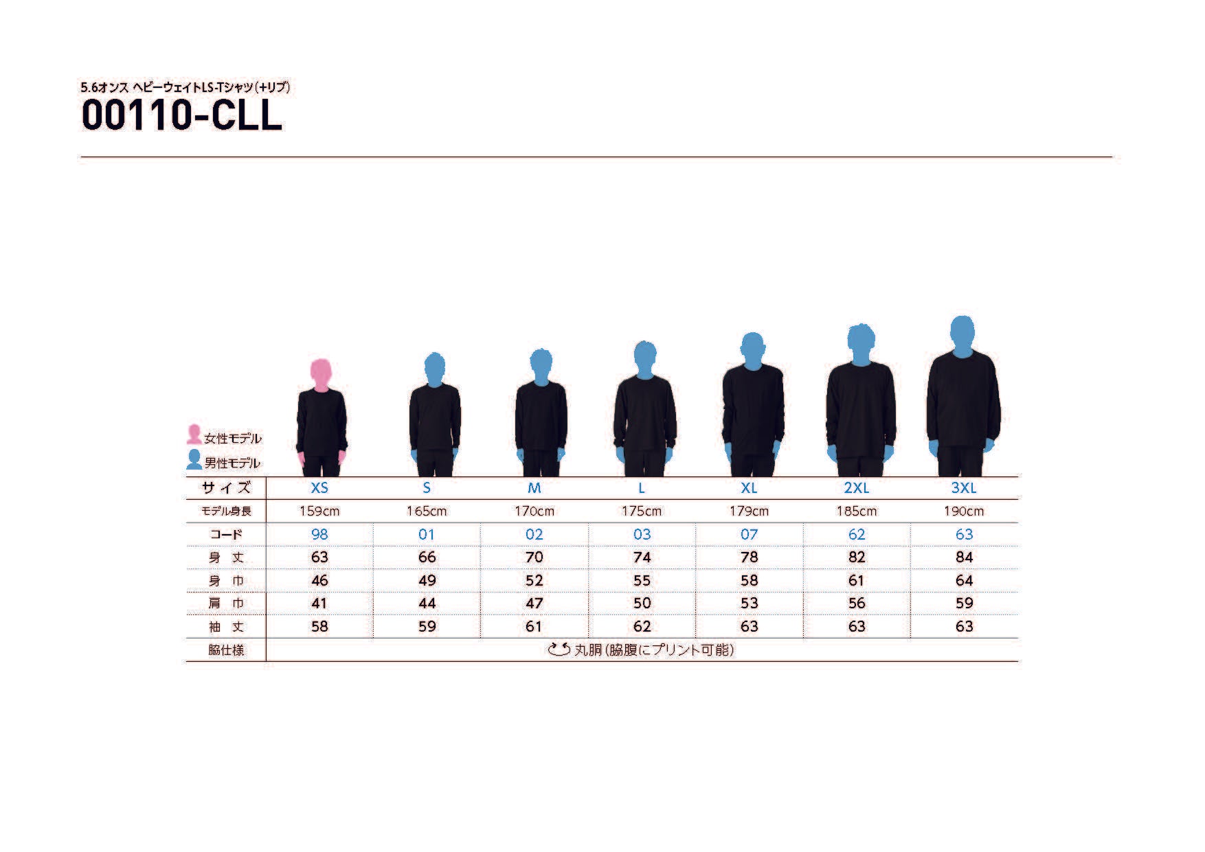 00110-CLL 5.6オンス ヘビーウェイトLS-Tシャツ(リブあり)